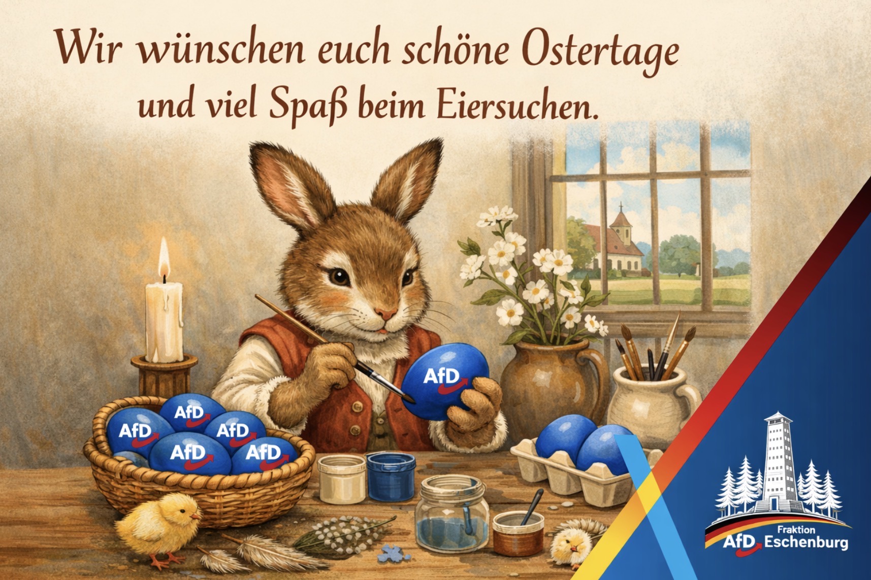 wir, die AfD-Fraktion in der Gemeinde Eschenburg, wünschen euch und euren Familien ein frohes und gesegnetes Osterfest.
